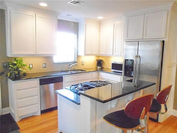 Want style and character that is move in ready? Well here you go. The Crestwood home is full of details. Large arched porch opens to a living room with a tall ceiling and rounded corners. Fireplace anchors the room with loads of charm. Dining with antique lighting and French door. The kitchen has been completely gutted and reconfigured with white cabinets, granite counters , stainless gas stove , and a kitchen island. With 2 bedrooms and nearly 1400 sq ft of space this house lives larger than most 2 bedroom homes. New windows in 2016. The electrical box and wiring have also been updated. Wood floors through out the entire home. The garage is usable and will fit a vehicle. There is another room on the back of the garage for storage or it is big enough for a workshop area.