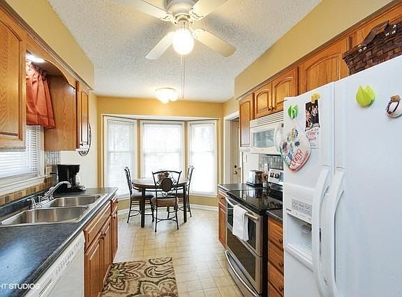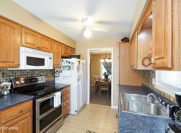 Come see this very charming 3 Bedroom 2 Bath Raised Ranch. Great eat in Kitchen with new stove. Lovely Living room/Formal Dining Room with newer carpet. Great family room with vaulted ceilings, boxed beams and Brick Fireplace. Nice size Master. Updated bathrooms. Finished basement rec room or 4th bedroom with Fireplace. Newer windows. Nice deck with fenced yard. Home is ready to be moved into.