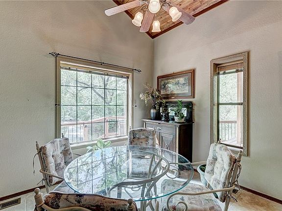 Beautiful retreat setting in Edmond on just over an acre of land. This private retreat is a 4 bedroom and 3 full bath home with grand views of the property. Kitchen boast granite, breakfast bar, pantry and open to the living room. Living room has fireplace and wood ceiling. Second living room downstairs has full bath and utility room with a side entry to the single (over-sized long) garage. A large bedroom downstairs with plenty of storage. Master suite is upstairs with a balcony, ceiling fan, fireplace, built-ins, two window seats, large closet and full bathroom. The multi-level deck is perfect for entertaining or enjoying the peaceful beautiful views throughout the day! Sprinkler system, and over-sized garage space. Great schools, close to shopping and all Edmond has to offer!
