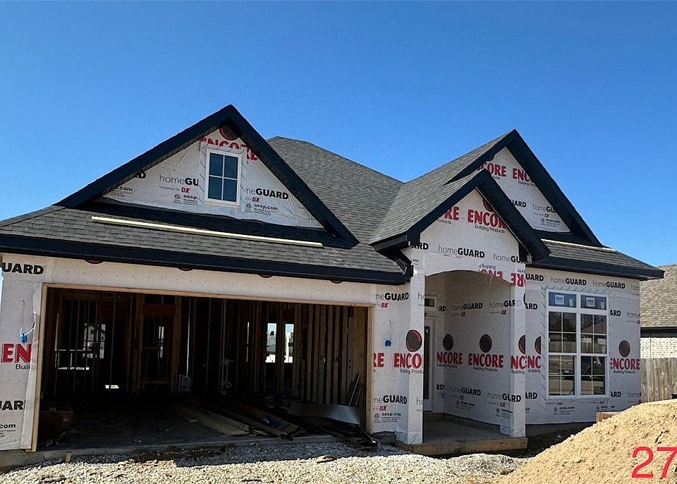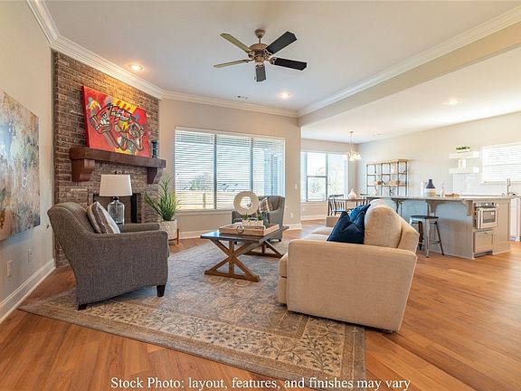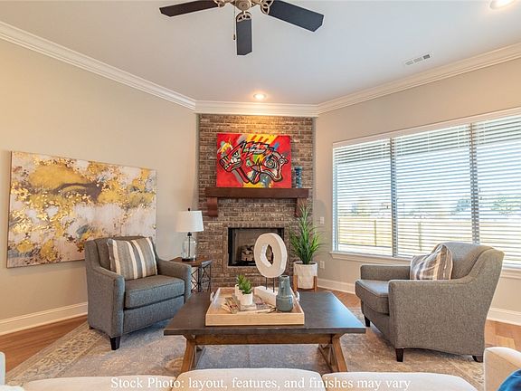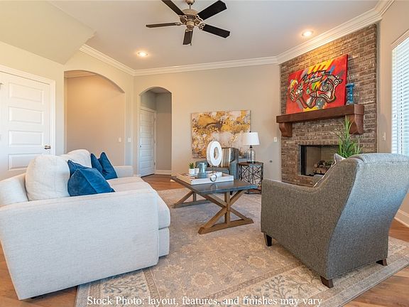 Centrally located to all that Northwest Arkansas has to offer. This 3 bed 2 bath home boasts, hardwood flooring in Living Room, Entry, Ceramic tile in Kitchen, & Breakfast Nook, granite counter tops, SS appliances including, stainless steel under mount sink, gas range, walk-in closets, cozy gas log fire place in living room. low e windows, landscaping package, fully sodded yard. Limited 1 yr builders warranty. Stock photo of Groveland Plan actual plan and specs may vary.