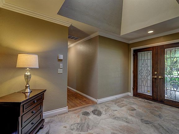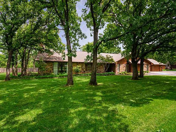 Tucked away in a quiet, wooded setting is this one-of-a-kind charming and well-maintained luxury home on 1.6 acres. You'll appreciate the solitude and convenient location offered by this property surrounded by mature trees, lovely landscaping, an outdoor fireplace, a private lighted tennis court, extensive playground area and beautiful views in every direction. The home is warm & comfortable while also offering space for entertaining inside and out. The sizable living area boasts 14' wood trimmed ceilings, massive rock fireplace and gorgeous floor-to-ceiling windows for lots of natural light and enjoying the view. Open to a large dining area this heart of the home is accented by iron railings, hard wood flooring, decorative glass accent window, iron & glass chandelier and convenient wet bar with wine frig, sink and more storage. A dazzling, updated kitchen features a large island with extra seating & stunning granite counter tops, a Jenn-Air range and extra wall oven, serving bar, eat-in dining area, walk-in pantry and abundant natural light. When you enter the master suite it feels like walking into your own private spa & retreat featuring a gas-log fireplace, private patio access, corner soaker tub, separate walk-in shower, abundant custom cabinetry and 2 walk-in closets - one doubling as a concrete safe room. Two additional living areas offer terrific views and room for play or watching your favorite movie or exercising or creating your favorite crafts. The interior picture is completed by three more sizable bedrooms: one would make a great study and provides a private, on-suite bath; the other two share the third bath and have large, walk-in closets. The over-sized, 3-car garage offers a hidden garage workshop, heated & cooled, and additional exterior storage perfect for yard and patio equipment. Custom features include plantation shutters and Anderson windows throughout the home, security and sprinkler systems. This lovely home, built by Jack Shelton and remodeled by Greg Avery, is just minutes from Sangre Ridge Elementary, Stillwater Middle Schools and OSU.