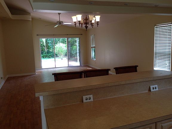 Available Now. 'Heron' Model, freshly painted light colored interior. 3BR/2BA + den easily converted to 4th bedroom. Open floor plan, large secluded partially covered patio perfect for relaxing, backyard mostly fenced in, with lush landscaping and 2 car garage. Ceiling fans throughout home and patio, window blinds. Spacious Master suite has roomy walk-in closet with shoe racks and shelving, sliding door to patio, sizeable bathroom with duel vanity sinks, separate tub and shower. Living area and den have wood laminate flooring, bedrooms carpeted. Ceramic tile flooring in the kitchen and bathrooms. Light and airy kitchen has plenty of cabinet and counter space and includes built in microwave oven, dishwasher, oven, garbage disposal and refridgerator. Community has clubhouse, fitness center, pool, playground & basketball. Boat storage available ($25/month), community boat ramp. River Forest is perfectly located 3 miles west of I-95 and within minutes to "A" rated schools, shopping and the beach. First, last and security. Tenant pays for water bill, electric and lawn. Application fee $100 through HOA.