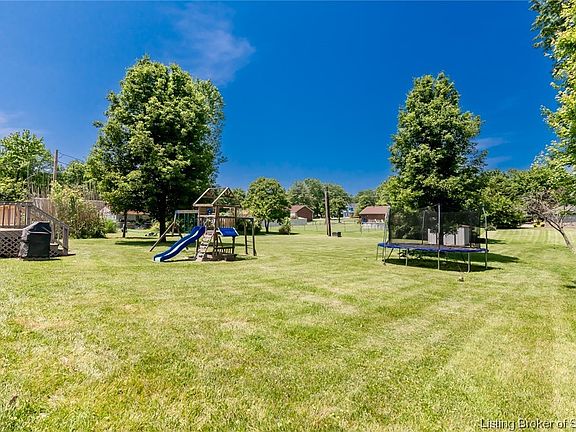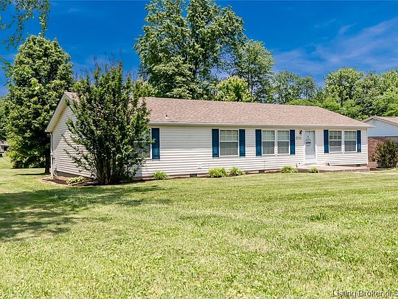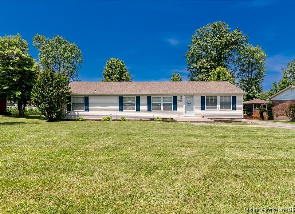 Wow! This great home has so much to offer inside and out! Updated roof and deck! Fresh landscaping! Vaulted ceilings! Open floor plan with a great living room and additional family room! And what a terrific location with easy access to all of Southern Indiana and Louisville! 3 bedrooms and 2 full baths! 1568 sf! Over 0.4 acre lot! Quiet, low traffic neighborhood! The large front yard and porch welcome you to this wonderful home! You enter the nice size living room that flows into the spacious kitchen with lots of cabinets, kitchen island with breakfast bar, and all appliances that remain! Off the kitchen is the large open dining room and then the huge family room! The hallway off the family room has 2 nice size bedrooms and a full bath! The primary bedroom is a great area to relax and has plenty of room! The en suite bathroom and walk in closet are just what you need! Outside on the comfortable rear deck there is plenty of space for relaxing! The play set will remain! There is a rear shed for storage! Check out all the space to roam in the back yard! This home is the total package! Call today for a private showing before it's SOLD!