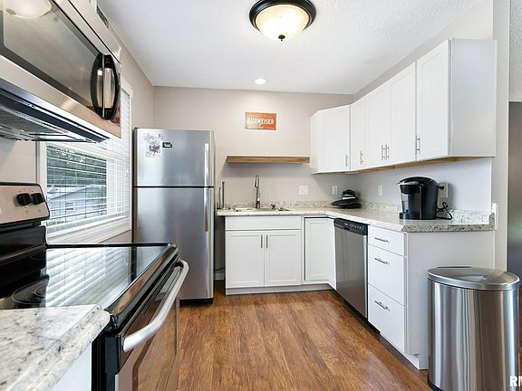 This 3 bedroom, 2 bath home with an attached 2 car garage will undoubtedly draw your attention. Located in Davenport on a corner lot, you will appreciate the additional parking and the fenced-in backyard. Once inside, on the upper level, you will appreciate the open concept living room and eat-in kitchen. In the dining area, you will find a sliding glass door that opens to the large back deck. The bright crisp kitchen is sure to delight any culinarian with its laminate flooring, stainless steel appliances, and amount of cabinets and counter space. All three bedrooms are generously sized and have laminate flooring, like the rest of the upper level. Down in the basement, you will find a spacious rec room and a full bath. The laundry area is also in the basement. There is an unfinished room that can be used for storage or can be finished to create a 4th bedroom. The fenced backyard expands your entertaining ability. This is an amazing opportunity to purchase a hidden gem.