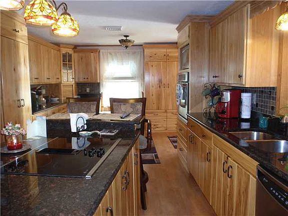 Updated, spacious home with attached 3 car garage, 3 sided tractor shed, fantastic detached workshop on 2.18 acres.This home features custom cabinets (hickory) and woodwork, granite counters,stainless steel appliances,sun room,front porch,2 back porch sitting areas(TREX),2 acres that look like a park and a partially finished basement complete with family room,bar and additional storage.This home is cute from the outside and amazing on the inside. Stay warm with pellet stove,gas stove and radiant heat. The beautiful stained glass light fixtures DO convey.Closed circuit TV system throughout.