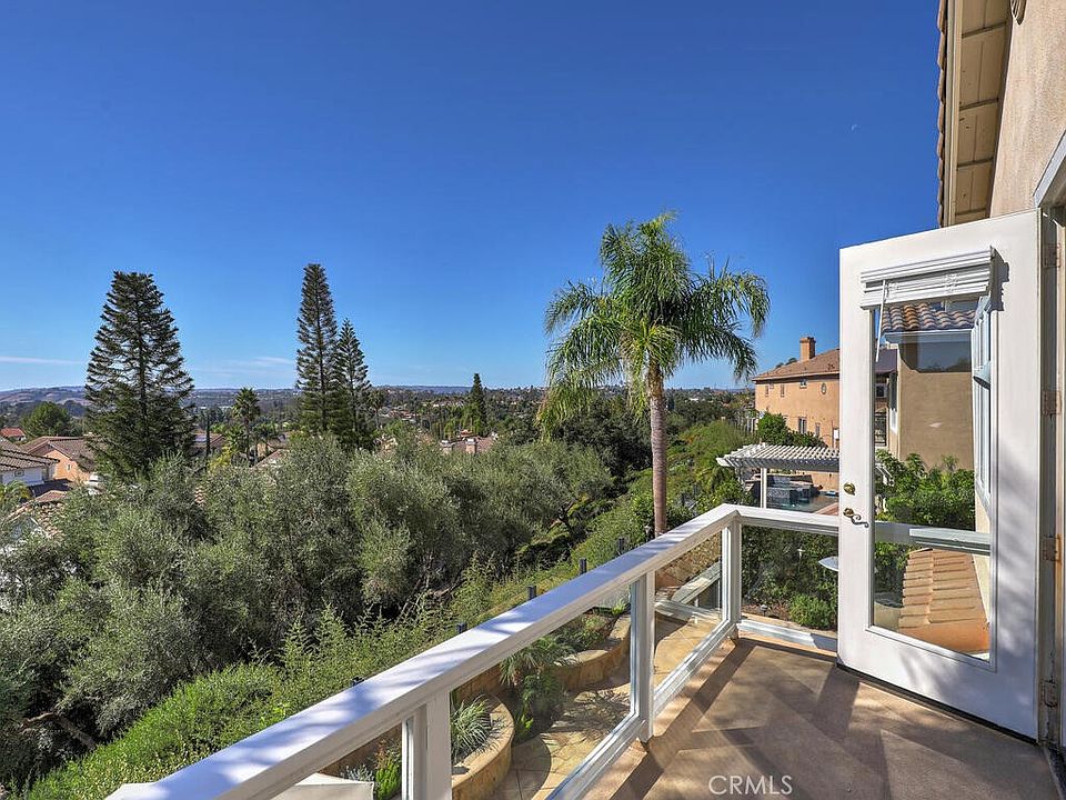 Welcome to this stunning single-family residence in the highly desirable Anacapa tract in Pacific Hills! Situated on a tranquil cul-de-sac, this exquisite home boasts spacious living and panoramic views with a floorplan perfect for comfortable daily living, and luxurious entertaining alike! Enter through the double doors into the foyer and be welcomed by the impressive, soaring ceilings of the formal living and dining rooms, creating an inviting ambiance. A spacious bar is ideal for entertaining guests. The heart of the home features a beautifully remodeled island kitchen with granite countertops, tumbled marble backsplash, refaced cabinetry, double ovens, and a pantry with pull-outs. The adjoining breakfast nook flows seamlessly into the cozy family room, complete with one of the three fireplaces, ideal for casual gatherings. The main floor offers a versatile bedroom and an adjacent bathroom with a walk-in shower, perfect for guests or a home office. Upstairs, the fabulous primary suite features breathtaking panoramic views, a spa-like bathroom with a deep soaking tub, walk-in shower, dual vanity, and an expansive walk-in closet with organizers. The secondary bedrooms are separated from the primary quarters by a loft. They are spacious rooms and share a Jack and Jill full bath with two separate vanity areas. Step outside to discover a low-maintenance yard designed for entertaining, complete with a Lynx barbecue center featuring bar seating, a new fridge, and side burner. Seat-wall planters provide additional seating for larger gatherings. Enjoy serene sunsets every evening from this beautiful backyard, and 4th of July fireworks from MV Country Club! Additional highlights include upgraded marble flooring, new carpet, new blinds, newer garage doors, extensive cabinetry in the 3-car garage, IQ Air purifier and a central vacuum system! The water heater and HVAC are newer, ensuring year round comfort. Lake Mission Viejo membership offers residents access to beautiful recreational amenities, including swimming, boating, fishing, summer concerts, and a variety of community events, all set against the picturesque backdrop of the lake.