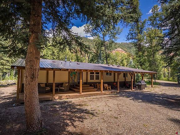 DOLORES RIVER FRONTAGE - CHECK OUT THE OLD BRIDGE! As you're entering the property and crossing over the narrow iron bridge atop the River, be grateful for this opportunity of riverfront as you'll be sharing the luxury of enjoying your home on 3.97 acres with your friends and family on the Dolores River in Colorado. This home was manufactured in 2000 BUT totally remodeled with style and beauty in 2023. It's now designed to give you the full comfort of a custom styled ranch home with two covered patios and the Dolores River right out the back door. Two guest bedrooms with one full bathroom and a Master Bedroom with an "grand" master ensuite. Prepare yourself to be the chef so that you'll enjoy the BBQ's on the covered patio with the River flowing downstream. Need storage - 2 car detached garage is a bonus. A lush green meadow lies between the River and Hwy 145 which is common ground for the Subdivision (see Water Rights doc). Getting back to why you want this home on the Dolores River - it borders San Juan National Forest between Dolores and Telluride, Colorado offering high pines and mature Aspen trees, fly-fishing for trout, playing in the water, tubing, hiking or just listening to nature (lots of wildlife) - all right out your back door. VIRTUAL TOUR IS OF TWO SEPARATE PROPERTIES FOR SALE!