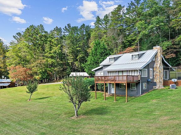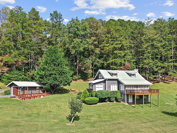 RIVERSIDE RETREAT: A Tranquil 25+ acre Mini Farm w/350+ ft on the Toccoa River. Nestled within the embrace of the majestic Blue Ridge Chattahoochee Forest, Riverside Retreat offers an idyllic escape into nature's embrace. This enchanting mini farm, situated along the pristine banks of the Toccoa River, embodies the essence of rustic charm & serene living. Here, amidst the whispering trees & the gentle murmur of the river, lies a sanctuary where the beauty of the outdoors seamlessly intertwines w/ the comforts of home. As you approach the property, a sense of tranquility washes over you, amplified by the panoramic views of the surrounding forest and the crystal-clear waters of the Toccoa River meandering lazily by. The main house, a rustic yet elegant retreat, exudes warmth & character. Large windows frame picturesque views of the forest, pasture and wildlife. The kitchen, a chef's delight, features modern appliances, custom cabinetry, and a farmhouse sink overlooking the lush greenery outside. Adjacent to the kitchen, a spacious dining area offers the perfect setting for gatherings w/ family & friends, where meals are shared & memories are made against the backdrop of nature's splendor. Retreat to the master suite, a peaceful sanctuary. Additional bedrooms upstairs (2br 1Ba) provide comfortable accommodations for guests, each thoughtfully appointed w/rustic furnishings. Outside, the property unfolds like a pastoral paradise, w/sprawling pastures dotted w/wildflowers & shaded groves where gentle breezes sway through the trees. A charming guest house offers additional accommodations for visitors, complete with its own kitchenette, 2br 1ba. AND A Equestrian Barn Haven for horses! Tucked away within the grounds, a charming apartment awaits, offering comfortable accommodations for guests or caretakers. YOU MUST SEE THIS ONE OF A KIND PARADISE!
