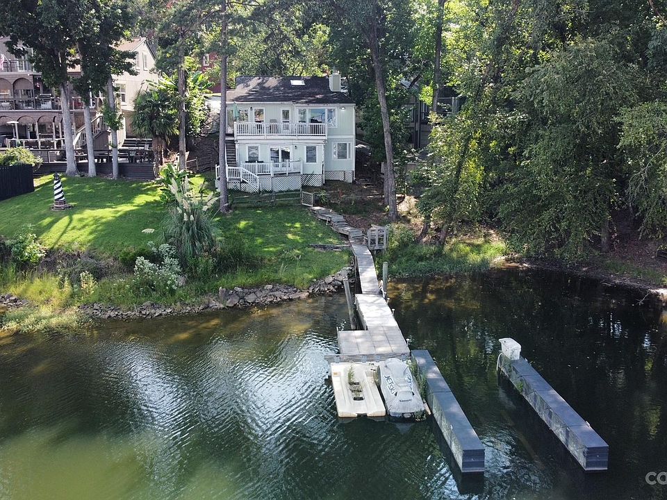 Great opportunity for an investor. Waterfront home overlooking Tega Cay Marina. Home was originally a 3 BR, 3 BTH one story home with a basement and has been modified to a 2 bedroom 3 bath home. Home has an ADA compliant bedroom and bath with a roll in shower and wall hung sink. Easily converted back to 3 bedrooms. Investors, builders and do it yourself homeowners, bring your visions and create your waterfront dream home overlooking the marina and main chanel of Lake Wylie. Enjoy many years of stunning sunsets from your back sunroom windows or your decks. This home is sold AS IS WHERE IS and that is reflected in the price. Price reflects need for structural work as well as updates on interior and exterior. Home does have a dock that does not have a Duke Power plate but is grandfathered. May or may not be able to be updated. Owners have the name of an attorney that assisted neighbors in obtaining a permit for a new dock. Check agent remarks for his information.