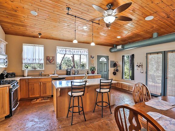 Not Your Cookie Cutter Home! Located close in, off Dersch, this home has several unique , desirable features! Energy efficient solar power and commercial grade roof. Lots of windows to enjoy the beautiful outdoors.Open floor plan with large kitchen, beautiful ceilings, decorative concrete flooring and lots of natural light. Two master suites plus a detached in-law unit,RV Parking, VA Assumable