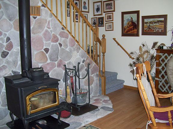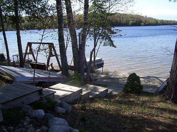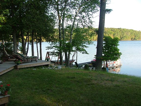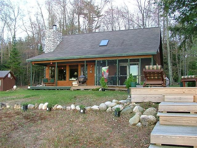 View more pictures of this home at: www.beaver island.com Call Ed Wojan realty for more information: 1-800-268-2711 A beautiful, north woods, lakefront cottage/home with 106 feet of lake frontage of the original Cable Bay Plat - on the main part of Lake Geneserath facing west-northwest. This home seems like it has 200 or 300 feet of frontage with it because Lot 45 to the north has 249 feet of frontage with the building site on this contiguous lot a couple of hundred feet to the north. The smaller second home that is on Lot 39 south of the Vassar home has over 200 feet of frontage and this Lot 39 structure is a long ways from and not visible from this offering. The view of the main part of Lake Geneserath and the sunsets in the summertime are spectacular from 27055 South Arm Road. The Lake Geneserath shoreline in front of this home is sandy with a little bit of stone but solid and very clean. The perfect dock and deck setup between the house and the lake makes this a lakefront homeowner’s dream and the perfect setup for a family who likes fishing. This 2-bedroom, 2-bathroom home of approximately 1500 sq. ft. actually seems much larger because the upstairs bedroom has a full-size bed, a twin bed, and a set of bunk beds; the semi-private sleeping area above the living room has two large couches with room for fold-out beds so that this house could actually sleep 10-12 people. The master bedroom on the first floor level looks out through a screened-in porch over the decks and the docks on the edge of the lake. The porch immediately in front of this bedroom has a hot tub at deck level; it’s almost like having a hot tub in your master bedroom but it’s just outside the door. The living room is open with a lot of glass on the lake side with a cathedral ceiling, a beautiful stone fireplace with glass doors for efficient use; this comfortable room allows you an impressive view of the lake. There is a dining room immediately behind the living room that is right beside the open kitchen that is also fairly open to the living room. The kitchen is modern with all the counter space and cabinets that you would ever need. Just off the hallway beside the kitchen there are pantries and utility area closets that make this a comfortable inland lake home. A partial basement houses a central furnace for hot water baseboard heating throughout the house and the water well pressure tank; this space also provides under the house storage. There is also a detached garage/workshop/storage building near the circular end of the driveway just to the north and inland of the house; this is a really handy accessory building that every home needs to have. This home is beautifully finished and decorated; it gives you the feeling of a northern lakes fishing cottage and yet it is a modern, year-round home. If you like watching loons on the lake or sunsets over water or fishing, then this property could become your perfect summer lake cottage or your retirement home. With the minimum raw land value of $106,000 (106 feet of lake frontage and a lot that is over 800 feet deep) AND the potential to pick up most of the personal property including boats, a Suburban, furnishings etc. as part of a package deal, this house is really a bargain at PRICE SIGNIFICANTLY REDUCED by almost $100,000! Now firm at an asking price of only $295,000.