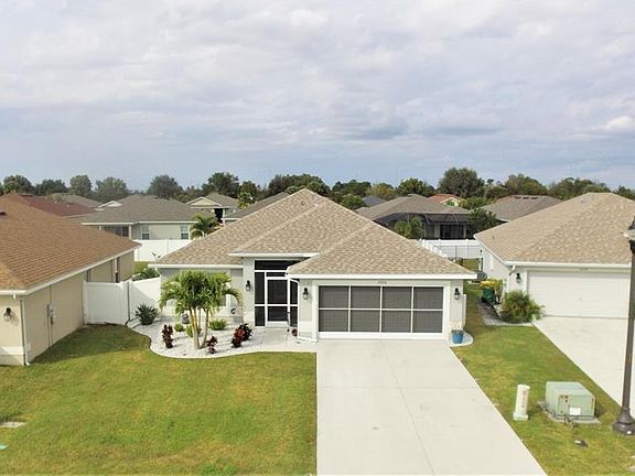 Beautiful 2016 built 4 Bedroom 2 Bathroom 2 Car Garage Pool home in the highly sought after deed restricted community of Creek Side. This well maintained split floor plan home features cathedral ceilings, tile floors in the main areas, laminate floors in the bedrooms, inside laundry room and a large open living room. The kitchen features stainless steel appliances, recessed lighting, 50/50 stainless steel sink, wood cabinets, tile backsplash, closet pantry, eat in breakfast nook, and a breakfast bar. Large master suit with walk in closet, shower and dual sinks. The exterior of the home has a large heated concrete in ground pool with screen in lanai, vinyl privacy fence, mature landscaping, and an irrigation system install (2018). Home is minutes away from shopping, dining, schools, punta gorda airport, downtown punta gorda, golf and more. Home is located on CITY WATER/ CITY SEWER and NOT IN A FLOOD ZONE and has had only had one owner.