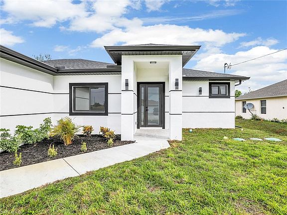 This NEWLY BUILT HOME showcases HIGH-QUALITY FINISHES and a THOUGHTFUL DESIGN that sets it apart. Featuring 4 BEDROOMS, 2 FULL BATHROOMS. TILE FLOORING THROUGHOUT enhances style and durability, while the MODERN LIVING ROOM stands out with a FIREPLACE and UNIQUE DESIGN ELEMENTS rarely found at this price. The SPACIOUS KITCHEN impresses with a STUNNING WATERFALL ISLAND, PREMIUM FINISHES, and a functional layout. IMPACT-RESISTANT GLASS WINDOWS & DOORS provide security and energy efficiency. The 2-CAR GARAGE features EPOXY FLOORING for durability and style. The PORCH & TERRACE boast ELEGANT TILE FLOORING, creating inviting outdoor spaces. Upgrades include PENDANT LIGHTS, CEILING FANS, LED LIGHTING, STYLISH BATHROOM MIRRORS & FIXTURES, and a SECURITY CAMERA SYSTEM for added peace of mind. Located in a TOP LEHIGH ACRES ZIP CODE, just 17 MILES FROM FORT MYERS INTERNATIONAL AIRPORT, offering CONVENIENCE & EASY ACCESS to everything the area has to offer.