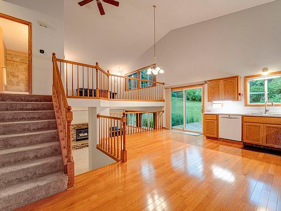 Not your everyday jewel, this home sparkles the moment you walk through the front door. You will be greeted with a tile entry that leads you into an open floor plan with high cathedral ceiling. The kitchen offers beautiful hardwood floors that lead to a 12x16 deck with an umbrella for shade on those really hot days. The open floor plan offers railing to look up to living room or down to family room with wood burning fireplace for those cold winter nights. Can't forget the beautiful hardwood floor in the primary bedroom that also has a pocket to the updated bath with tile floor surround, double sink, lower level has a ¾ bath, bedroom with new carpet, large, finished utility room. The private backyard has a custom playhouse with loft and deck. Custom storage shed along with 12x15 patio. Home is pre-inspected. Don't miss out on this one!
