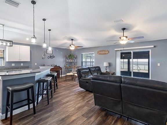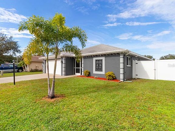 Welcome to your dream home nestled in the wonderful community of North Oaks Estates! This stunning 3 bedroom, 2 bath POOL home boasts extraordinary updates. Step into luxury with new high-end wood plank vinyl flooring. You are welcomed with an open floor plan that leads to an oversized 10x30 foot screened in lanai with upgraded vinyl windows, perfect for entertaining or enjoying the beautiful Florida weather. To complete your backyard to perfection, this home also includes a screened in 14x 28 foot oversized HEATED SALT water pool! A beautiful fully remodeled kitchen is a chef's delight with brand new stainless steel appliances, new soft close shaker cabinets, and granite countertops. Open to the main living area, you will be pleasantly surprised with the updated dimming light fixtures and ceiling fans throughout the home. Main living areas include remote ceiling fans. Eat at the kitchen bar or enjoy the dining room off the spacious kitchen. The privatee master bedroom offers a view of your gorgeous pool, a private en-suite bathroom with new quartz countertops and vanity, and a large walk-in closet with an additional linen closet for extra storage. Two additional bedrooms accompany this home with a shared updated bathroom with quartz countertops and new vanity. The oversized two car garage is perfect for additional storage. The new garage door offers connection to your cell phone for easy access and security, not to mention the included garage door screen for those who want an extra breeze while working in the garage. You'll enjoy plenty of privacy with a fully fenced 6 foot fence. The community of North Oaks Estates offers a playground, park, pond for fishing, low HOA fees and no CDD fees! This is the perfect place to call home with easy access to all major highways, shopping, and restaurant