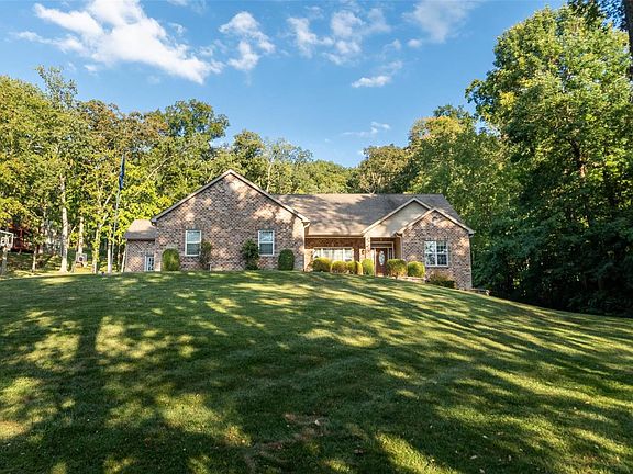 Experience ultimate leisure in this stunning ranch home with an expansive gunite pool and spacious patio, perfect for gatherings. This gorgeous 4-bedroom, 3.5-bath residence sits on 2 acres of beautifully landscaped grounds. Upon entering, you'll admire the Great Room’s vaulted ceilings, large windows, and full masonry gas fireplace. It flows into a kitchen featuring hardwood floors, a double-tiered center island, custom cabinetry, granite countertops, and a cozy breakfast nook with a bay window. The split floor plan includes a main floor master suite with a private entrance, coffered ceilings, and a luxurious bath with double sinks, a whirlpool tub, and a large custom closet. Two additional bedrooms share a Jack-and-Jill bath, each with large closets. Downstairs, enjoy a large recreation room with an entertainment bar, a full bath, and the fourth bedroom. Additional features include a 2.5-car oversized garage and a tranquil private lot with recent updates like a new HVAC system.