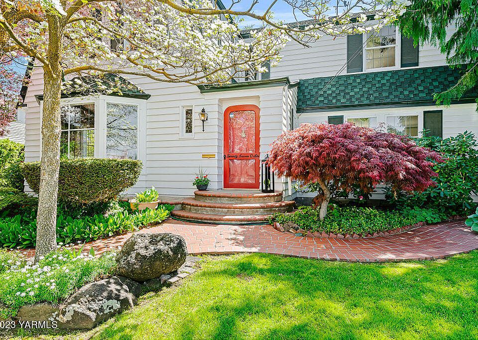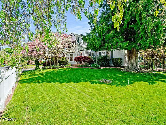 A Dreamy Dutch Colonial with the perfect updates throughout sits in Yakima's historic Barge Chestnut neighborhood. Perched on a double lot and exuding a secret garden feel this is an entertainers dream. This iconic home has been thoughtfully renovated while maintaining its character, The built ins, coved archways, original leaded glass and extensive original woodwork.Natural light flows through the main floor. The dining room and kitchen are bright and welcoming. The kitchen showcases an oversized island offering plenty of storage, a gas range, farmhouse sink, built in wine cooler and a rare butlers pantry. Then opening to a one of a kind sunken family room centered around a cozy fireplace. The formal dining room offers less casual evenings and is fantastic for larger gatherings. The large-scale living spaces are grand with rich molding and glass detailing. Formal & informal opportunities to live casually or entertain are found the main level of the home.Up the spiral staircase you find the primary suite, junior suite and two additional bedrooms . A washer and dryer are located on two levels of the home for ease. Downstairs is the ultimate hang out space. Don't miss the 'hidden television' in the basement and the castle in the backyard while touringThe whimsical backyard is just missing fairies glowing about the trees. Fenced and private you will truly feel an overwhelming relaxation in your own personal oasis. A picturesque swing and treehouse complete the utopia. Off street parking and a large single car garage also add to the overall functionality of this Crown Jewel.