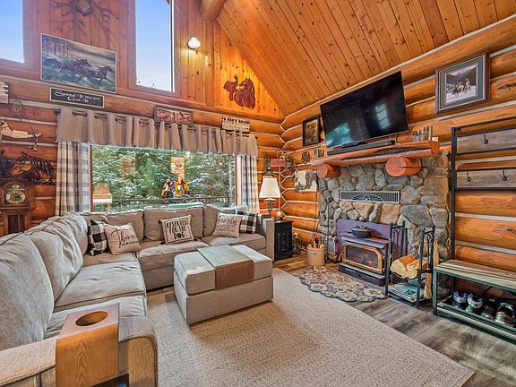 Beautiful Log home home on 15 acres with a pond and the Chewelah Creek running though the property. Open floor plan with main floor bedroom, beautiful bathroom with dual sinks with a jetted clawfoot tub. There are two main floor outside decks to sit and enjoy the park like settings. Downstairs has another full kitchen, family room with gas stove, 3/4 bath and a nice size bedroom with its own patio. The large upstairs loft is currently being used for a office but could easily be used as a 3rd bedroom or great game/TV room. Outside there's an oversized 2 car garage, barn with a tack room with power and water, also a shop that's insulated with a wood burning stove that could also be used for hobbies or possibly additional living quarters. This home truly shows pride of ownership, new life time roof, hot water tank and soft water unit all in the last few years. This is a true recreational paradise with several lakes, rivers and hundreds of miles US Forest Service lands right outside your door.