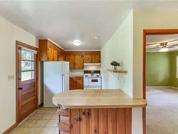 Solid and spacious 3 bedroom brick ranch on a level lot with a fenced back yard. Great starter home. Covered carport parking for one with a side parking area for additional cars. Covered front porch entry. Living room has carpet and a ceiling fan with lots of natural light. The kitchen includes a large stove/range and a refrigerator with wood cabinets and a bar which separates the kitchen from the breakfast room while providing additional storage. A built in china cabinet in the breakfast room gives you a great place to store dishes. The bedrooms with carpet have hardwood flooring under the carpet. A full bathroom has tiled flooring and a shower/tub combination. The washer and dryer pass with the sale as an added bonus! They are functional at time of listing but are sold as is. The rear yard is fenced giving a great play area for children or pets. This home is in a USDA eligible area meaning that if the buyer qualifies they may be able to buy the home with a USDA loan which requires zero down payment. The alarm system is leased. If the buyer chooses to sign a contract with the alarm company prior to closing it can remain, otherwise the alarm sytem will be removed by the alarm company prior to closing. This needs to be addressed during the inspection period to allow time for the alarm company to remove the system if needed. Home is in nice condition. Buyer may have inspections but a due diligence period is recommended as the seller will make no repairs. This is a great home at this price point with lovely curb appeal. Schedule your private showing today!