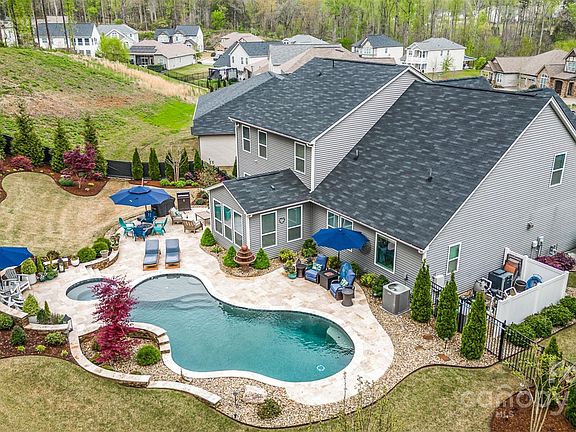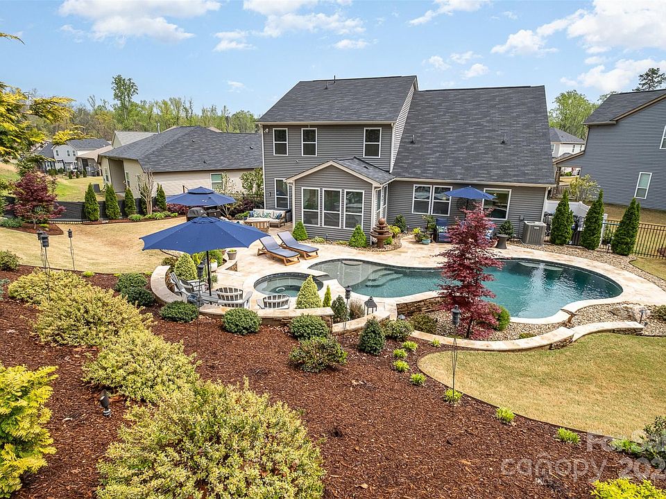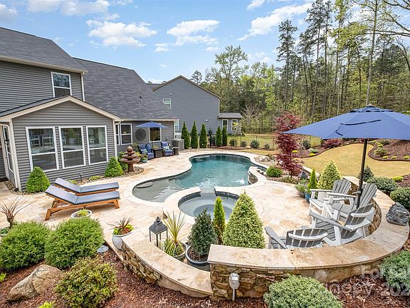 Nestled in a peaceful cul-de-sac, this stunning home exudes luxury and charm at every turn. Step outside from the sunroom to the beautifully landscaped backyard oasis, complete with a sparkling pool, spa and waterfalls surrounded by stone & travertine. Perfect for summer barbecues or lazy days lounging in the sun. This stunning property boasts a spacious open floor plan with gorgeous hardwood floors that create a warm and inviting atmosphere. The gourmet kitchen is a chef's delight, featuring stainless steel appliances, large island, granite countertops w/additional cabinets at breakfast area. The great room boasts an abundance of light from the added windows and sunroom. Primary bedroom on main offers a peaceful retreat with a luxurious ensuite bathroom with board and batten trim and a custom California closet. Upstairs bonus room & 3 additional well-appointed bedrooms and 2 baths provide ample space for guests and family. Don't miss your chance to call this exquisite property yours.