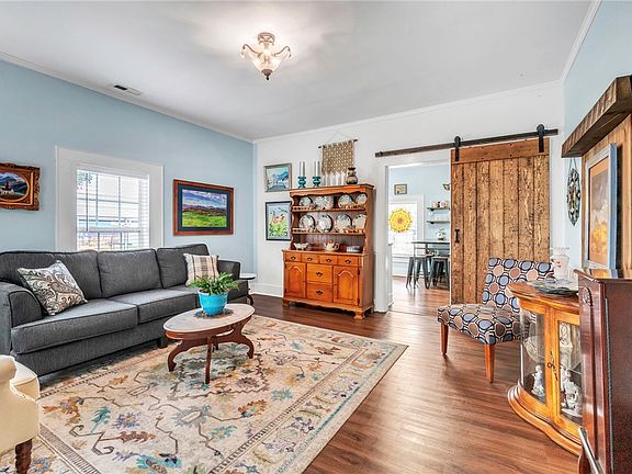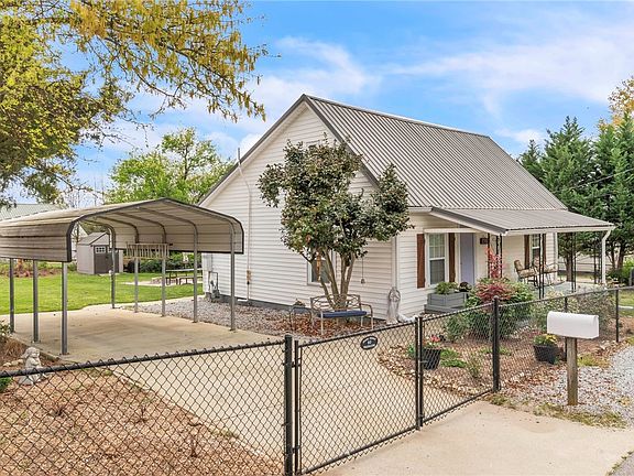 Make this cozy cottage yours! Sit on the porch and drink your coffee in the morning. You will love all the windows bringing in all the natural light throughout the home. When you come into the home you can see all the care that went into the home. The living room is nice and bright with vinyl plank flooring. The kitchen has stainless steel appliances that all stay with the home. The primary bedroom has a walk in closet. The second bedroom is currently being used as an office. Outside you can enjoy entertaining around the firepit in your fully fenced in yard. There are 3 outbuildings to store your yard tools and toys. There is also a carport to the side of the home! IMPROVEMENTS: New Gutters 2022, crawlspace vapor barrier, reinforced piers and dehumidifier in 2022, the roof was installed in 2020, tankless water heater 2020, new fence 2020, and the HVAC was replaced in 2019. What more could you want? Come see this beautiful home and make it yours!!!
