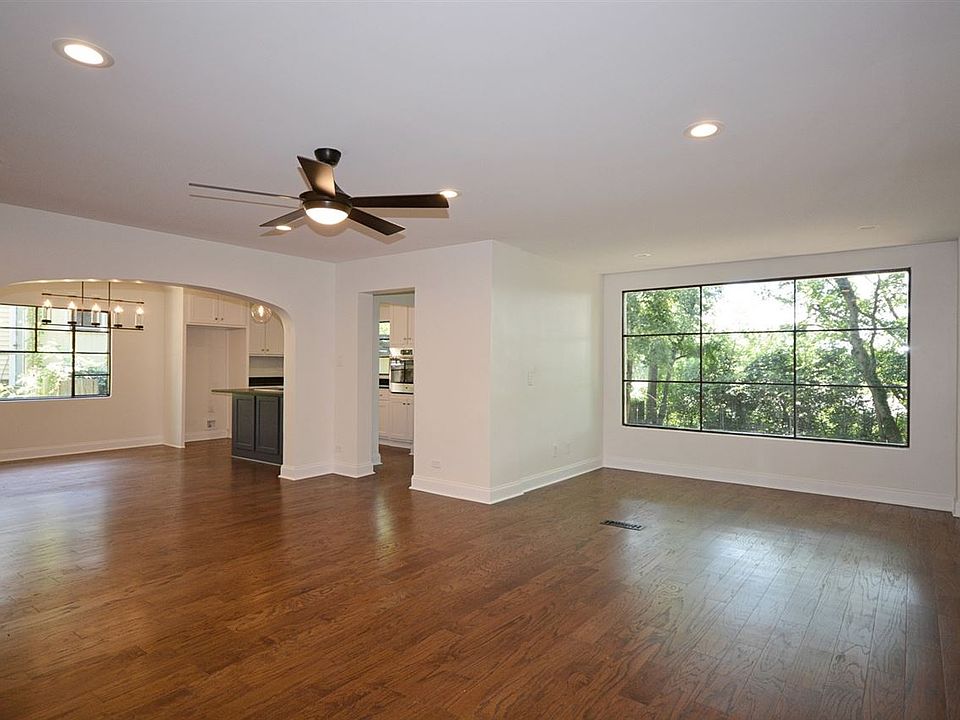 - LIVING ROOM DESC: Smooth Ceiling, Wood Floor, Ceiling Fan, Recessed Lighting