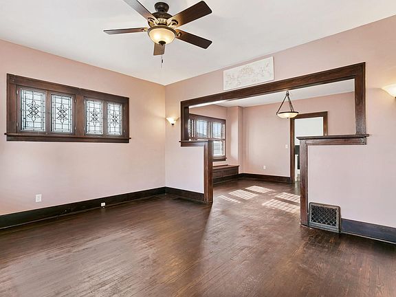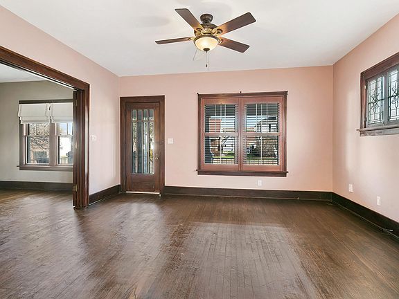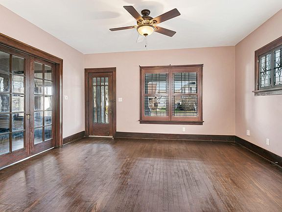 Charming 2 bedroom Bungalow located close to shopping, dining, recreation, schools & lovely Vandeveer Park. You will love the character this home provides along with some updates. Kithchen features white cabinetry plus big enough for a bistro table. The living room & dining room are open to each other & feature hardwood floors, windows with leaded glass inserts, leaded glass front door & solid wood shutter blinds. Cozy up on the solid wood window seat with storage in the dining room. Beautiful french doors lead to one bedroom & both bedrooms feature hardwood floors. The bath has been updated with double vanity, cabinets & walk in shower. Main floor stack washer & dryer are an added convenience. The walk-up attic offers more space to finish or for storage plus lots of extra space basement as well. The 2 car garage is oversized with alley access. There is also a large covered front porch & enclosed back porch. Updates also include replacement windows, light fixtures, ceiling fans & bath
