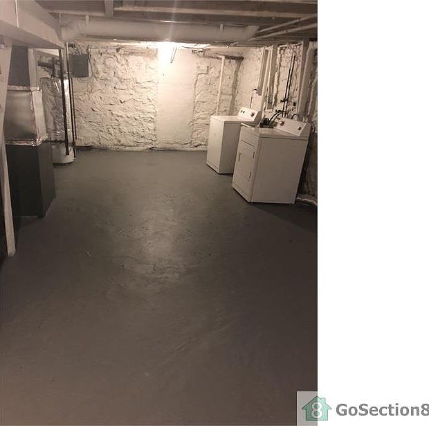 Two bedroom one bath row house with full unfinished basement, front porch, fenced backyard with washer and dyer also new flooring ceiling fan NO PETS For more properties like this visit GoSection8.com.