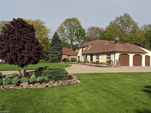Beautiful Spanish style colonial with great landscaping and easy access circular driveway. Close to restaurants, retail and I-77. Spacious patio includes a 12 ft X 20 ft motorized retractable awning. The 3 car garage includes a workbench and attic storage. The 18 ft X 10 ft outbuilding with upper loft areas provides lots of storage. Vaulted Main floor Rec room has a gas insert fireplace. Recently remodeled master bathroom includes a walk-in shower with grab bars. Master Bedroom has two large walk-in closets. The second level hallway bathroom has also been updated with a double vanity, vinyl plank flooring and new fixtures. The 24 ft X 12 ft sun room has ceramic tile and provides lots of natural light and multiple uses. The large Laundry room can also double as an office or other space. Hot water tank newer. Electrical main panel and sub panel updated 2010. New well pump and water system (2017). Reverse Osmosis water filtration system (2016). Furnace installed in 2011. Roof guaranteed until 2024. 1 Year Home Warranty included!
