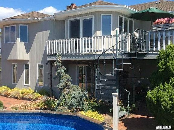 Traditional Waterfront Extended Hi-Ranch W/Pool, Pergola, Exter. Changing Rm/Tiki Bar- Refaced Bulkhead/3 Boat Slips/Floating Docks! Deep Wide Water Canal A M A Z I N G Views! A Hamptons Resort Yd! Huge Private Mbr Suite W/ 2 Walkins/Mbth Sitting Rm! Just Under 3000 Sq Ft! Security System, 3Yr Roof, Hardwd Flrs! Andersens & Huge Granite Eik! Entertainer's Delight!