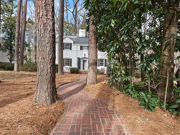 This Forest Hills beauty is finally available after being loved by the same owners for over 50 years! The classic white brick 2 story, with its curved brick walkway and arched doorway, sits majestically on a double lot surrounded by trees and nature. It's located right in the heart of Raleigh, walkable to NCSU, the Village District, the Rose Garden, restaurants and Whole Foods and just 5 minutes to downtown Raleigh. Lovingly updated over the years, it's custom kitchen was specially designed by an NCSU furniture maker for the locally renowned food writer/stylist owner and includes a pastry bench, curved cabinets and shelving, Sub-Zero refrigerator, Dacor gas range, prep sink, butcher block island, solid surface countertops, coffee niche, pot hanger, separate dishwashing area, roll-out drawers, and a built-in desk w/file drawers PLUS breakfast area overlooking the deck & private backyard! Hardwood floors in much of home! The large living room features a slate FP, useful built-ins and loads of natural light. The vaulted sunroom makes a great office and includes a first floor laundry closet. The four Bedrooms upstairs all have hardwood floors, picture moldings and smooth ceilings. There is storage in the walk up attic (accessible through primary closet) and basement. This sweet gem holds so much history and sweet memories - and you can now make it your next home!