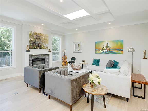 West Coast style 5bed/5bath Home located on a quiet cul-de-sac steps to Cadboro Bay Beach & the Village. Offers an open & light filled main floor that flows out to your private rear deck & garden with hot tub; perfect for family gatherings & an entertainers dream. The modern kitchen has quartz counters, ss appl incl a gas range & a large island with bar seating for casual dining. There is a primary bedroom on the main floor with ensuite & walk-in closet as well as a large office/family room, laundry & 2 pc bath. Heading upstairs there is another primary bedroom with ensuite along with 2 more beds & bathroom. The lower level has a 5th bed & bath for a potential in-law suite & a family room w wet bar. Other features in this thoughtfully constructed home are gas fireplace, crown molding, 10 ft coffered ceilings, skylights, heat pump, irrigation, 2 car garage & loads of storage. Walking distance to Gyro Park, Cadboro Bay Village & all levels of schools including the University of Victoria.