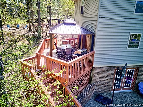 Great Smoky Mountain feel. Enjoy the deck under the screened-in gazebo, sit by the fire pit overlooking 3+ acres of woods with privacy, or enjoy arbor swinging bench. The front covered porch or side exposed aggregate patio has a sunny/grassy area. Like homesteading? Grow a garden, pick fresh berries, make maple syrup or have chickens in the large coop. Home has large 36x36 garage/concrete floor/220 amp/3 bay doors/separate enclosed area to be used as wood-shop/extra storage or entertainment area with wood moldings & large bar installed. House includes finished walk-out basement/separate laundry/large living room with tile gas fireplace and a large master bedroom/walk-in closet with crown molding. Kitchen with pantry/French doors to deck/stainless steel stove & dishwasher. Major bonus upgraded Trane Geothermal electric savings. Warranty includes 5 yr roof/1 yr. structural. All updates: 2 new exterior doors/8 Light fixtures/2 Ventilation Fans/Refinish tub & warranty (2023). New netting & shaded curtain double roof Gazebo/new upstairs Gerber toilet/4 tons of river rock in landscaping (2022). New sink faucets/kitchen light/septic pumped preventative maintenance (2021). LVP flooring (bathrooms, laundry, kitchen), blacktop patching (2019). Highspeed internet installed/3 dimensional new roof (2016). Geo Trane Enviro Wise (2015).
