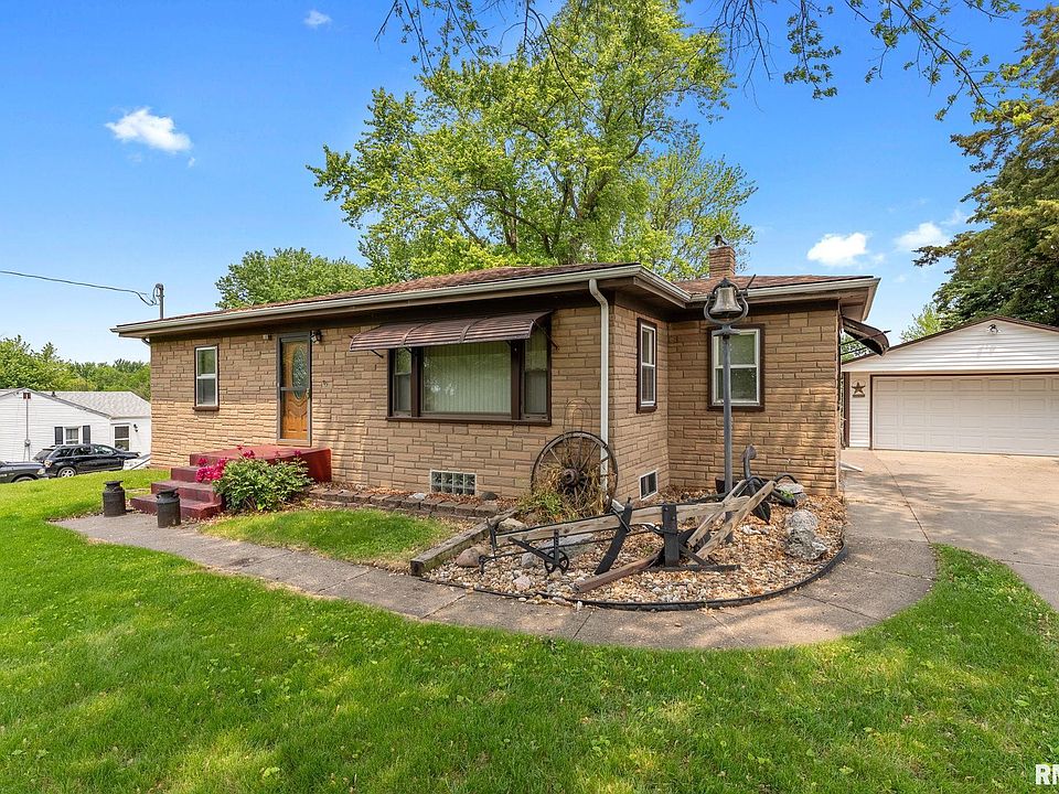 Live close to the necessities, have an awesome large yard, a house that had good bones but would love your touch on it. Sit on the back deck in the back with fenced in yard, a shed to hold the lawn care tools and mower. The cozy quaint kitchen has a stove top and a built in double oven, stainless sink, two windows to bring in that warm sunlight. Don't need a table and chairs in the kitchen, consider adding an island instead. Get your imagination going and see if maybe you can open up the kitchen and expand if you will. Large living room with newer bay window. Newer windows here and there as well. Main floor bath and 3 bedrooms. Must check out he basement, a gorgeous custom built bar with 6 stools awaits the gatherings you can have in this open concept rec room. On the other half of the basement you have a laundry and storage room, 7 x 3.6 enclosed shower and plenty of extra for storage. A very well maintained home with New roof in 2023, new bay window in 2020. Permastone siding on the home. The riding lawn mowers stays with the house.
