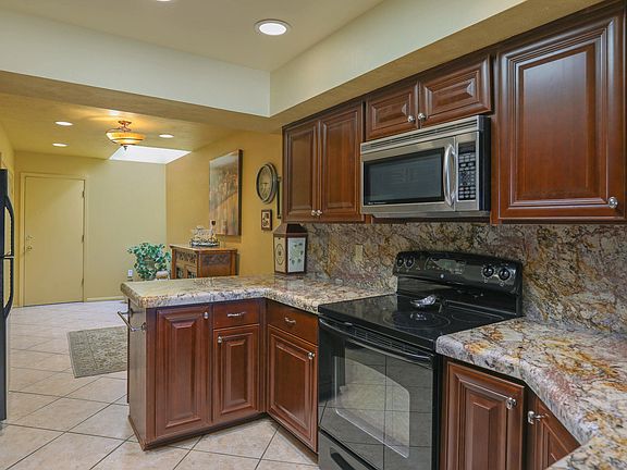 Spectacular Tucson National townhome on hole #14 of the famous Catalina golf course! Turn Key ready home with designer touches throughout! The living room has soaring wood beam ceilings highlighted with cherry wood flooring, as well as a cozy fireplace! Additional upgrades include custom cabinetry, fabulous granite countertops, designer lighting, and custom paint. Three bathrooms with large walk-in showers and beautiful vanities! This is truly a must see in a popular gated community!