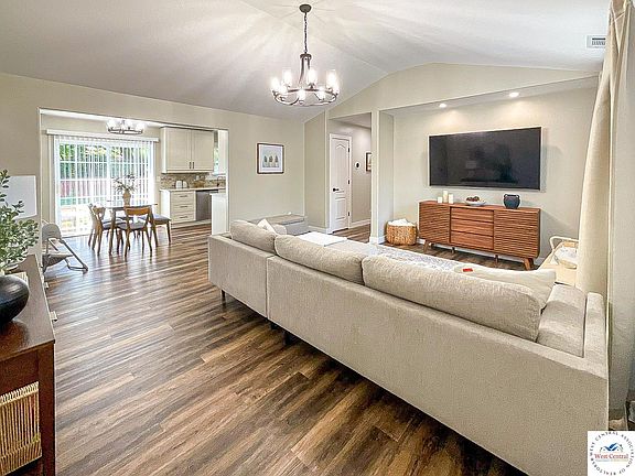 Welcome to this charming ranch-style home with 3 bedrooms, 2 full baths and over 1,200 sq ft of living space. This beautiful home offers a eat-in kitchen with stainless steel appliances, quartz countertops, soft-close cabinets, stone backsplash, a water filter, and a sliding glass door leading to the large, fully fenced backyard. Enjoy the open floor plan filled with natural light, vaulted ceilings and a lovely chandelier. Vinyl flooring throughout the main areas and cozy carpet in the bedrooms. The master bedroom includes a tray ceiling, walk in closet and a master bath, while both bathrooms feature tile floors, quartz countertops, and bathtubs. Additional features include a water softener, all electric utilities, a spacious backyard patio, and a 6-foot privacy fence. Located on a spacious corner lot with beautiful curb appeal and only minutes away from amenities. Don't miss the opportunity to make this move-in ready home your own! Be sure to check out the 3-D tour - https://my.matterport.com/show/?m=UGo2ztfJTcs