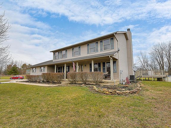 WOW!! Everything you would want is here! Beautiful 2 story home on 10.25 acres w/ 2 barns located up a hill in the country with great views! This home offers your open concept family room/kitchen. SS appliances to stay. 1st level also offering dining room, living room/den, half bath w/new flooring &vanity, new large laundry room & mudroom off 2 car attached garage. Freshly painted 1st level. 2nd level offering 4 bedrooms 2 full baths. Large master suite w/ master bath new flooring & freshly painted,walk in closet. New carpet/paint in bedrooms. Hall bath updated with new vanity, flooring & freshly painted. Full basement half finished with potential 5th bedroom & family room. Cabinets for craft area. Two pole barns and small pasture area/animal barn. Above ground pool with deck. NEED TO SEE!