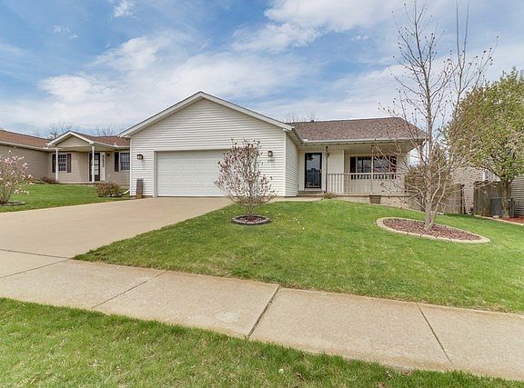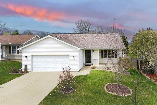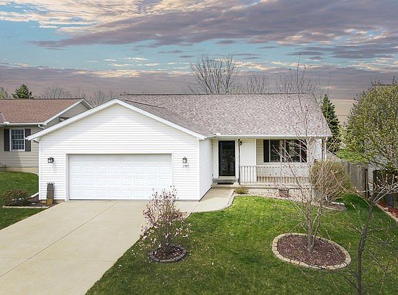 Stylish, Updated Ranch in Heartland Hills! Enjoy your favorite drink, prepared on the custom coffee bar with antique counter and slate backsplash, relaxing under the covered front porch, basking in the scenic field out back on the elevated deck, or entertaining down on the patio enclosed by a privacy fence. The open living room with cathedral ceiling offers an inviting entrance, while the large eat-in kitchen with new appliances (dishwasher and gas stove) and fixtures (faucet, sprayer, and garbage disposal) provides a flexible dining space. Three bedrooms and two baths, all updated with new flooring and painting, are conveniently located on the main level, along with the laundry. Major updates include roof '13 and water heater '15. You will not be lacking storage space, even after finishing the full-size basement with egress window and rough-in for bath, utilizing an oversized, two-car garage and exterior shed. The semi-rural setting, just 3-5 miles from shopping, freeway access, Veterans Parkway, and the Rivian plant, boasts lake access for fishing and kayaking.
