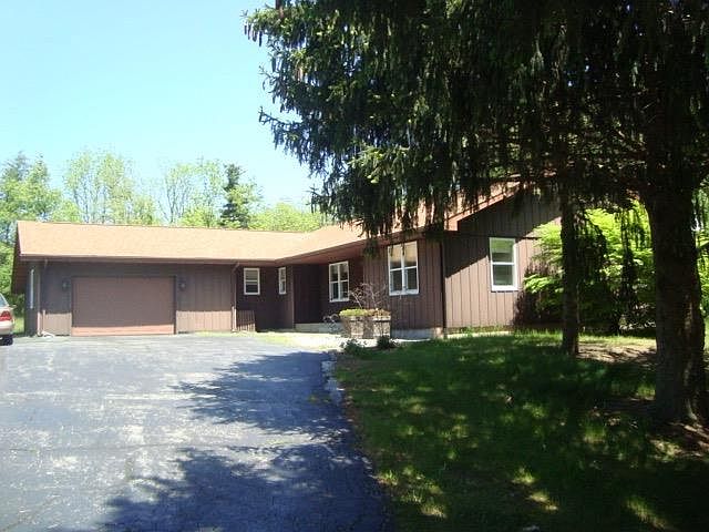 Hard to find secluded four acre tranquil lot in desirable location. Quality owner built ranch never been offered on market. Open living room, kitchen, dining area with brick fireplace. Three bedrooms master offers bath total two baths. Also featured, sun room, laundry area and attached garage. Storage shed and extra 25'X 23' work shop, art studio that is insulated and heated with wood burner. Abundant wildlife surrounds this gorgeous property. Entrance is easement. ENJOY