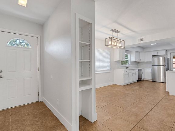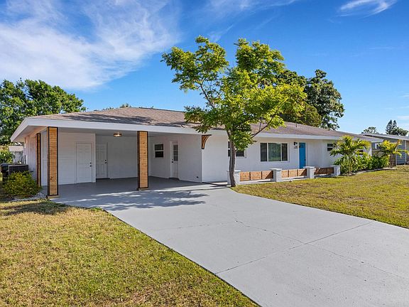 Three bedroom home with private fourth bedroom suite offers the flexibility and space you need! Updated with modern finishes with convenient Sarasota location, minutes to Siesta Key Beach, restaurants, shopping and more! Upon entering, you will find the spacious naturally lit living room with ceramic tile flooring throughout. Modern kitchen offers cabinet space and nearby dining area, featuring built-in shelves and cabinets, perfect for extra storage. All three bedrooms allow for queen-sized beds, have vinyl wood-grain plank flooring, come equipped with ceiling fans, and have built-in shelves & drawers. The primary bedroom features a larger closet and contemporary bathroom with curbed shower. The Florida room has large windows looking out to the backyard, also with a ceiling fan and built-in shelves, perfect for a peaceful home office space. Two vehicle carport available with laundry room, full size washer/dryer provided. The one bedroom guest suite is situated to the left of the property and has a kitchen (no stove, has a hot plate), bedroom, bathroom and stacked washer/dryer. Ideal space for visiting guests, blended families or roommates. Lawn Care & Pest Control included