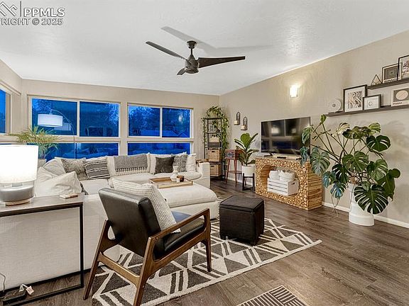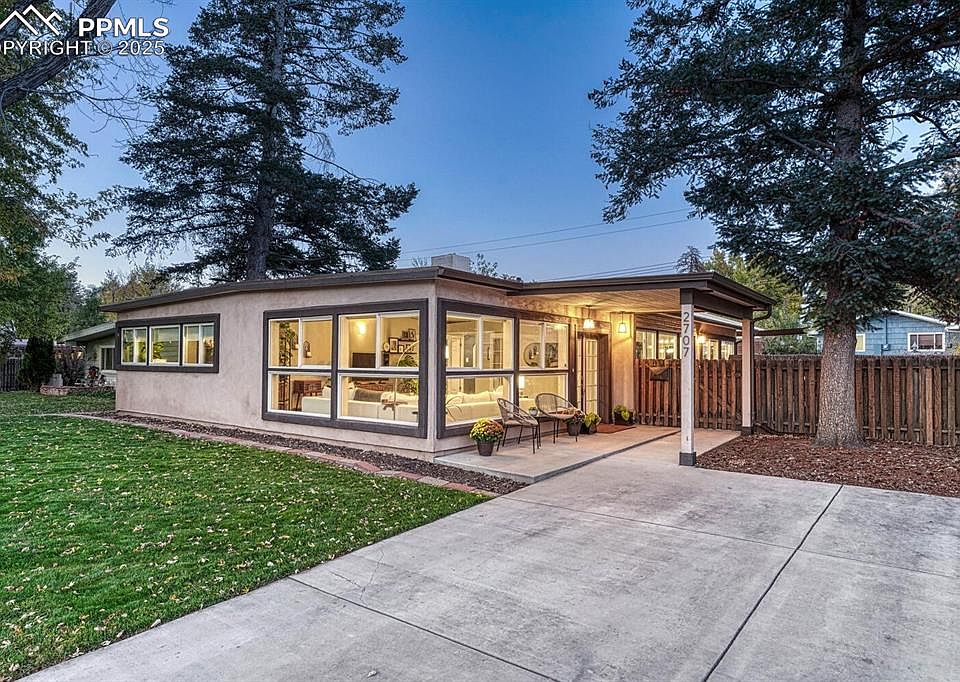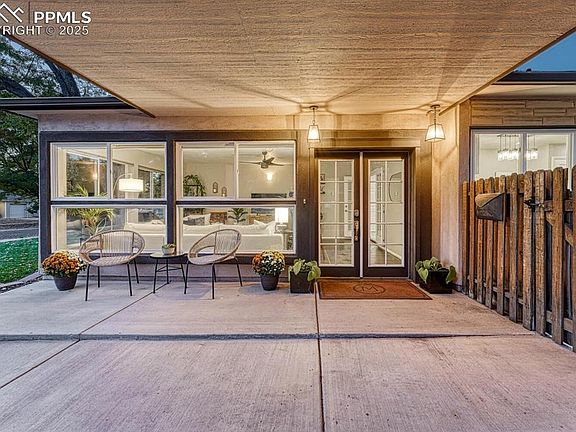 Can you imagine living in a mid-century modern home, tucked into a quiet neighborhood with Patty Jewett Golf course 1 mile south & Colorado Springs Country Club 1 mile north of your front door? Imagine starting each day with a quick walk around the pond/waterfall at Nancy Lewis Park, just a few blocks away! While strolling through your neighborhood, you’ll enjoy streets shaded by mature trees, offering scenic views of Pikes Peak, the mountain range, and quick access to the Rock Island Trail! The open floor plan and wide glass patio doors create seamless indoor-outdoor living, with a large wrap-around patio accessible from both the kitchen and backyard. Uncommon and wonderful extras are the planting beds that border the privacy fence, and a private well provides irrigation for unrestricted watering.There is alley access to the garage, and an additional pea gravel parking area for an RV or other toys. (Make sure to take a look at the aerial view to see how spacious and full of options the property lines are.) Some of the upgrades that have been completed in the last 4 years are custom rods, shelving and pull drawers in the massive closet wall seen in the primary bedroom, new appliances, new roof, new water heater, patio posts & sail, exterior lighting and landscaping, window blinds, interior lighting & paint, a laundry closet with full sized stacked washer & dryer, bathroom renovations, hardware updates, installation of luxury vinyl floors in the sunroom and refinished hardwood flooring in the rest of the home.- A full list of the upgrades & costs will be available on the home’s flyer when you "Come Take a Look Inside!"