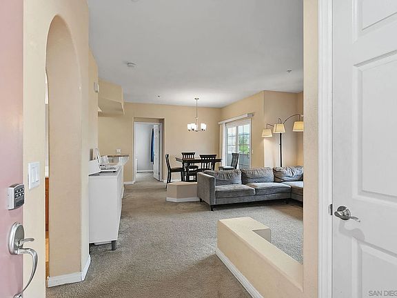 This stunning 2 bed 2 bath condo is located in a gated community. The home boasts a large east-facing balcony that offers views of nearby hills and nature. with an open floor plan there is plenty of natural light throughout. The spacious primary bedroom features an ensuite bathroom and a large walk-in closet. Very convenient with in-unit washer and dryer. Enjoy the community amenities: Pool, hot tub, and BBQ area. Easy access to trails, shopping and schools. Centrally located within 20 minutes to downtown San Diego.