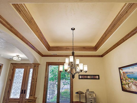 - Breakfast Bar, Built-in Features, Ceiling Fan(s), Double Vanity, Enclosed Toilet(s), Granite Counters, Kitchen Island, Linen Closet, Open Floorplan, Pantry, Primary Downstairs, Shower/Tub Combo, Soaking Tub, Solar Tube(s), Stone Counters, Tile Counters, Tile Shower, Vaulted Ceiling(s), Walk-In Closet(s)