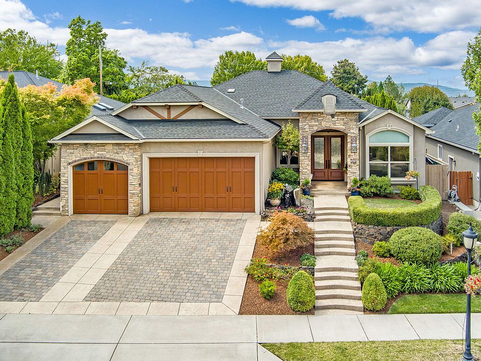 Welcome to a Pagnini masterpiece, where elegance meets functionality. Enter through 8-foot custom wood doors to a stunning open floor plan blending sophistication and comfort. At the heart is a gourmet kitchen is a large granite island, breakfast bar, high-end stainless-steel appliances, & two wine refrigerators. The space is illuminated by a skylight and features floor-to-ceiling Alderwood cabinetry w/ glass tiles. The kitchen boasts a 6-burner Petazzoni cooktop, double wall ovens, & granite countertops. The adjacent living room has vaulted ceilings, expansive windows, & a fireplace surrounded by custom cabinetry. The split floor plan offers privacy, w? a luxurious master suite opening to the serene back garden. The master bath includes a jetted tub, travertine shower, double vanity, & a spacious walk-in closet. 2 additional bedrooms share a Jack & Jill bathroom. The office features double walnut doors, built-in cabinets, and a view of Roxy Ann. 3-car garag