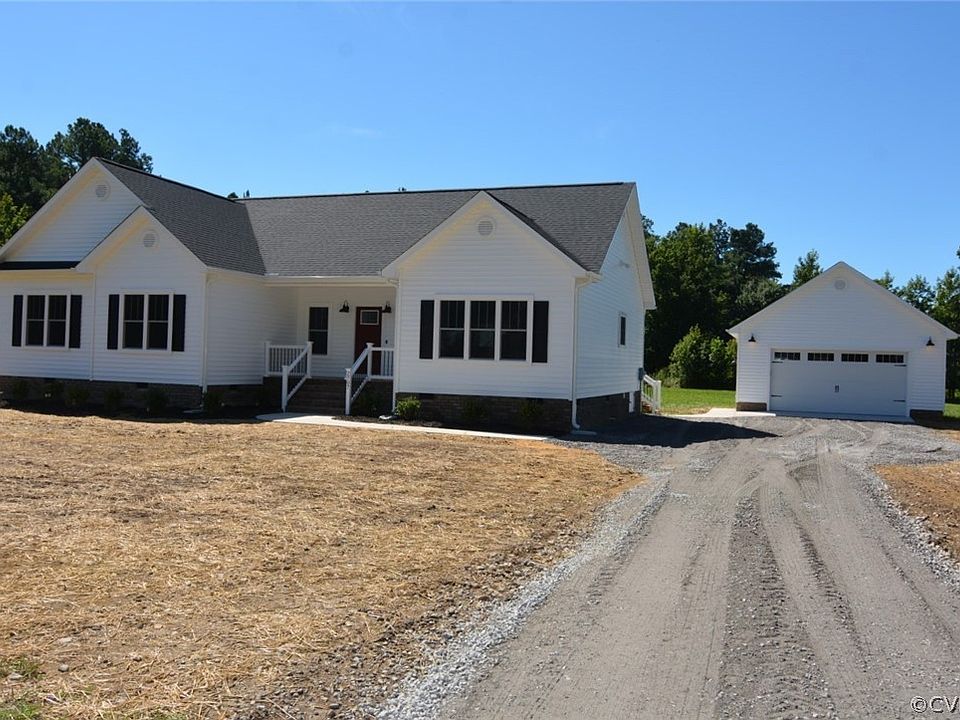 New Construction 3 Bedroom "Rancher" with Detached Garage on 1.41 Acre Lot. As you enter this custom-built home the open floor plan with craftsman accents & semi-split bedroom design will let you know this is it, welcome home! Amenities include. Great Room – Hardwood Floors, Stone Fireplace with Gas Logs, Tray Ceiling with Recess Lighting. Kitchen - Custom Cabinets with under-counter lighting, soft-close doors & drawers, 7' island, granite countertops. Frigidaire Gallery appliance package that includes smooth top range, microwave, dishwasher, and French door refrigerator. Dining Room - Hardwood Floors & Recess Lighting. Primary Bedroom - Tray Ceiling with Recess Lighting & ceiling fan, walk-n-closet, & attached Primary Bath, ceramic tile floors, Walk-in 5' Shower & 6' Vanity with Dual Sinks. Bedrooms 2 & 3 have carpet floors, ceiling fans, & nice size closets. Family Bath - ceramic tile floors, large vanity, & tub/shower. Laundry Room - ceramic tile flooring, washer/dryer hookup with wall cabinets and under-counter lighting, & pantry closet. Pull-down attic with floored area for storage. 12-12 Deck with Vinyl Railings. Detached Garage - 24 x 24 with Auto Opener.