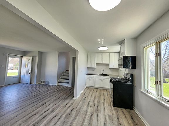 Step inside this remodeled 4 bedroom and 2 full bath home. The English basement features a full bathroom. The first and second floor are freshly painted with new wood laminate floors. Remodeled kitchen has new refrigerator, new stovetop, new dishwasher, new oven, new countertops and new cabinets. Both bathrooms are new, with new light fixtures. The sump pump is also new as is the laundry tub. The roof and siding are about 12 years old and some of the windows are newer. There is a huge fenced yard, and the home features a two car garage. Don't miss this one!