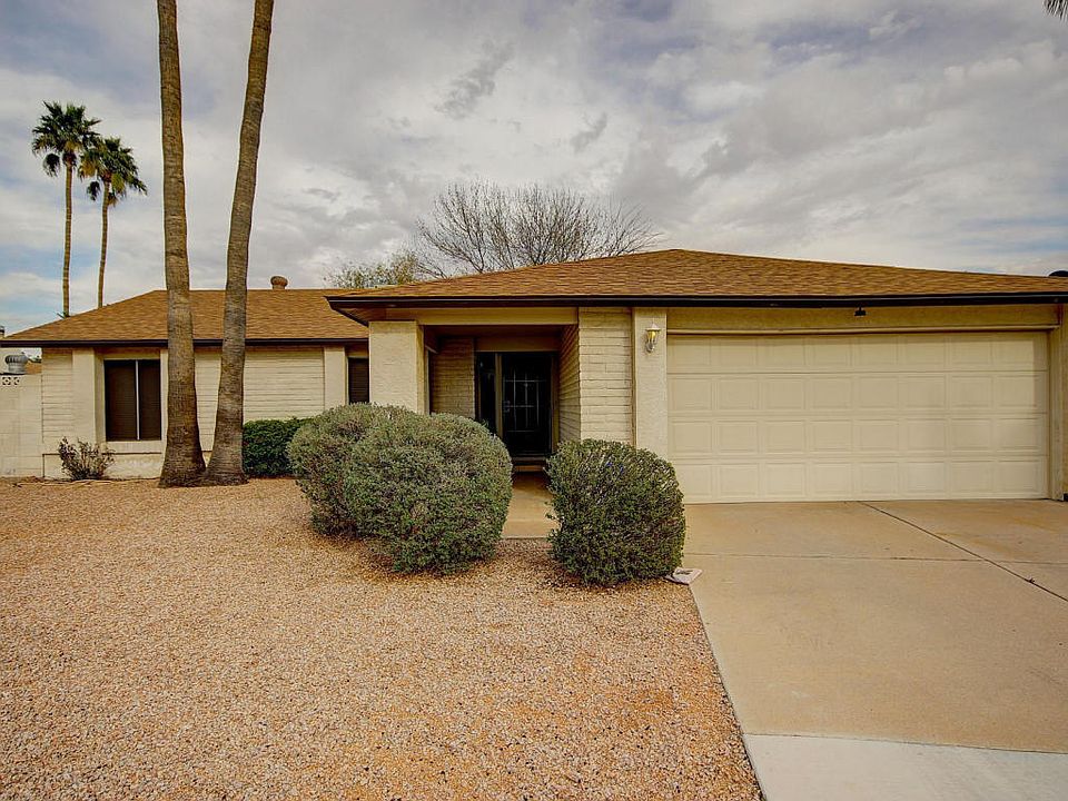 This is IT! Fantastic single story home in great Chandler location! Fall in love with the perfect home like feel that offers custom designer paint, picture windows and a handsome brick fireplace! Eat in kitchen features white appliances, custom cabinets with retro hardware, breakfast bar and plenty of counter space. Each spacious bedroom has plush carpeting. Master bedroom includes an adjoining bath. Generous backyard is complete with a covered patio, mature trees and tons of room for the ultimate oasis! 2 year old roof. This home is sure to go quick! See it today and make it yours!!