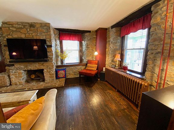 Renovated Stone Farmhouse that exudes charm & character. Situated on a park like .88 acre lot loaded with large boulders and mature trees. This beautiful home offers gorgeous interior exposed stone walls throughout, exposed original hardwood floors throughout, 2 full new bathrooms & deep set windowsills in every room. As you enter the side door you will find a charming family room with a large stone fireplace, stone walls & hardwood floor. Large eat in kitchen/breakfast room with breakfast bar, stainless appliances, stone walls, hardwood floor & french doors leading to rear pebble stone patio. Extra wide steps lead to the second floor which has 3 spacious bedrooms offering overhead light/ceiling fans & a fully renovated hall bath with custom cabinetry, tile floor & tile shower/bathtub. The incredible 3rd level offers skylights, stone walls, shiplap floors, tongue & groove ceiling, hand-hewn beams and a master bath with jetted roman tub. The entire house has hardwood floors, double hung replacement windows, overhead lights &ceiling fans. 200 AMP service, gigabit ethernet wiring throughout, 2009 Weil-McLain burner, exterior freshly white washed & painted. Amazing COMPLETELY FENCED yard with large rocks, 3 access gates (one large enough for a vehicle), exterior shed & an extra large newly sealed driveway with turnaround. Sellers are sad to leave this very special property that any buyer would consider lucky to call home. Please note that that attic bedroom/office access is currently through master bedroom. Remaining exterior stone can easily be exposed if desired..... buyers ran out of time.