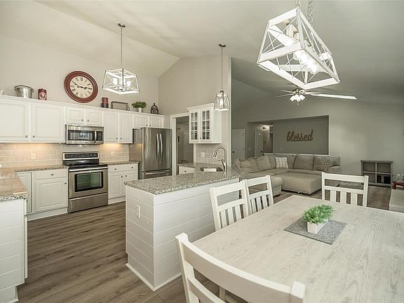Open concept walk-out ranch home located in convenient O'Fallon neighborhood has been nicely updated and maintained! Great curb appeal with professional landscaping, covered front porch with porch swing which leads to great room with vaulted ceilings, white-washed fireplace and skylights! LVP flooring runs to AMAZING eat-in kitchen with white cabinets with crown molding, granite countertops, SS appliances and shiplap accents! En suite bedroom features vaulted ceiling, French doors, wood burning fireplace and large bath with separate shower and soaker tub and double vanity! You will love the flat, fenced and usable backyard with two-tier deck. Yard backs to wooded common ground and offers privacy and an amazing area to hang out with friends and family! Additionally, home features main floor laundry, large rec space in basement, new doors, fixtures and trim, fresh paint and so much more! Come see this gorgeous home today before it's SOLD!!
