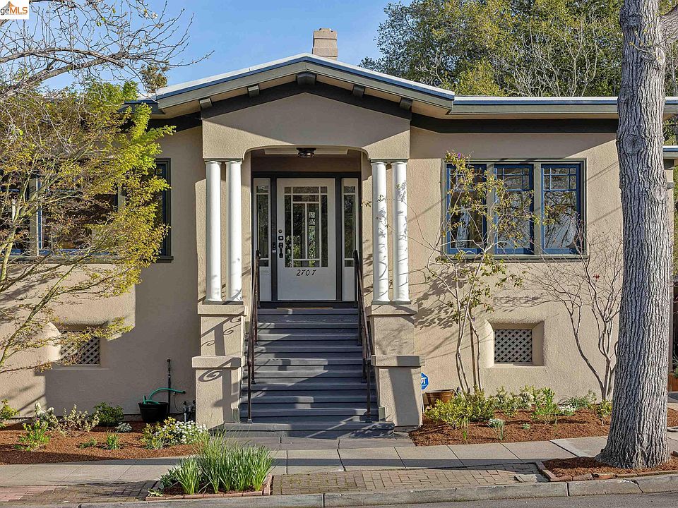 Timeless Craftsman Elmwood home w/ 3-bed + 2-bath. Bathing in sunlight w/ hardwood floors + period details throughout. Pleasant living room w/ original fireplace spanning back wall. Formal dining room w/ charming built-ins + brass chandelier sits near kitchen w/ quartz countertops + stainless steel appliances. Lots of hallway storage connects 2 bedrooms sharing a spacious full bath. Up a few stairs awaits the primary w/ recently added spa-like bath. Downstairs laundry + garage and exterior access. Lovely backyard fully enclosed w/ stone patio, lawn, + cozy string lights. Around the corner from College Ave w/ easy access to Rockridge BART, freeway access + so much more